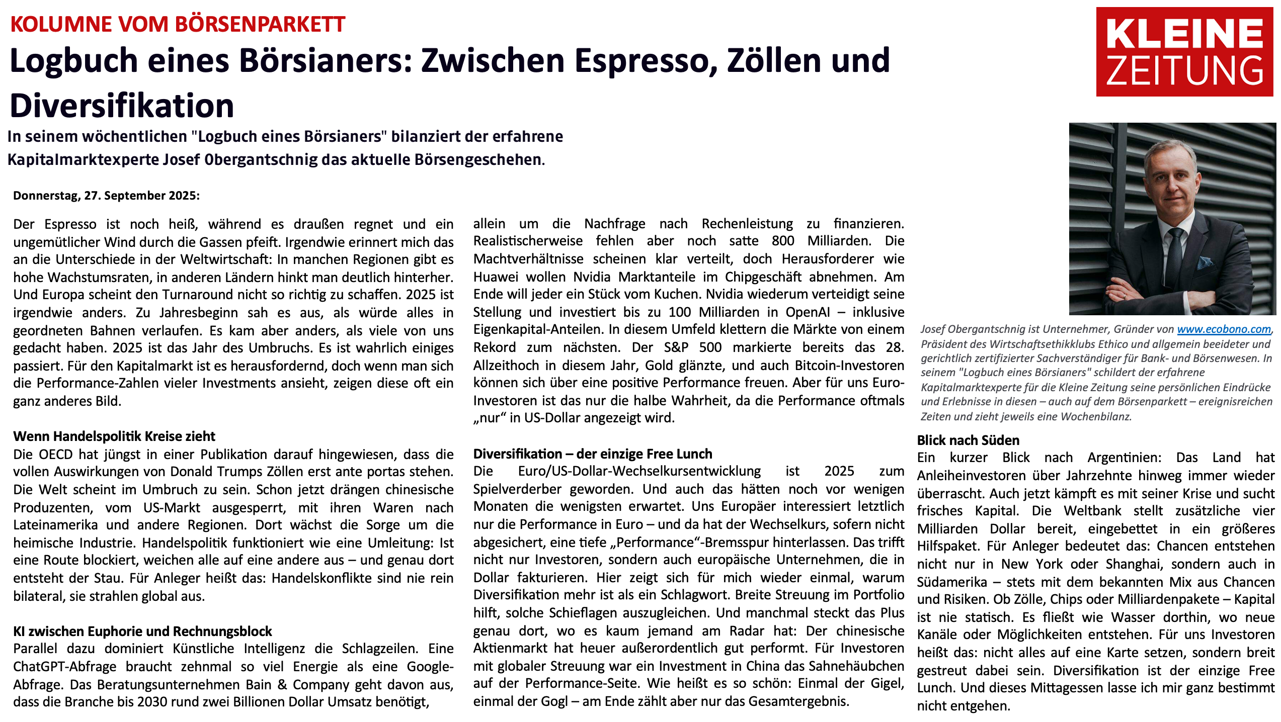 Wöchentliche Kolumne vom 27.9.2025